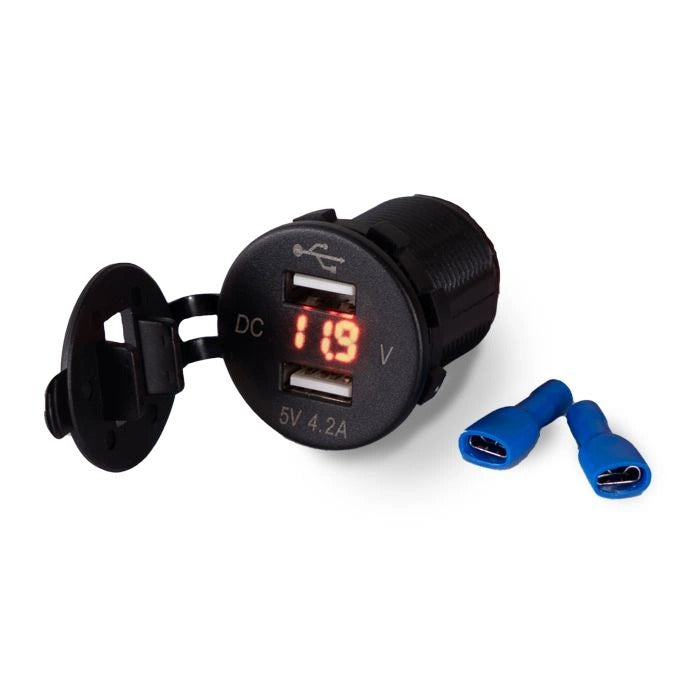 To idealne akcesorium do monitorowania napięcia w systemie i jednoczesnego ładowania urządzeń USB! Dzięki wydajnemu prądowi ładowania 2,1 A na port USB (łącznie 4,2 A) Twój telefon, tablet lub inne akcesoria będą zawsze naładowane. Podłącz za pomocą przekaźnika lub wyłącznika zasilania i gotowe.